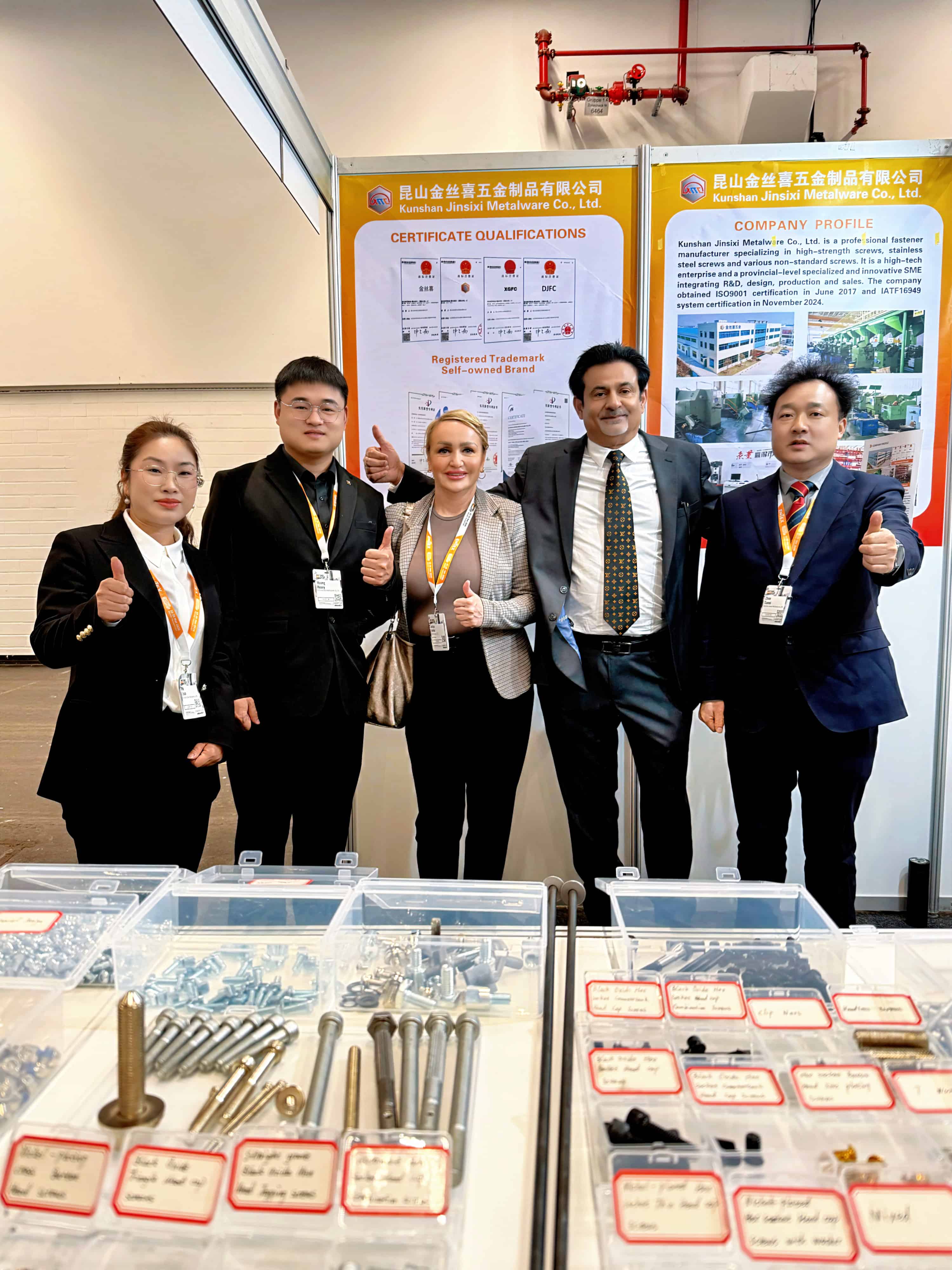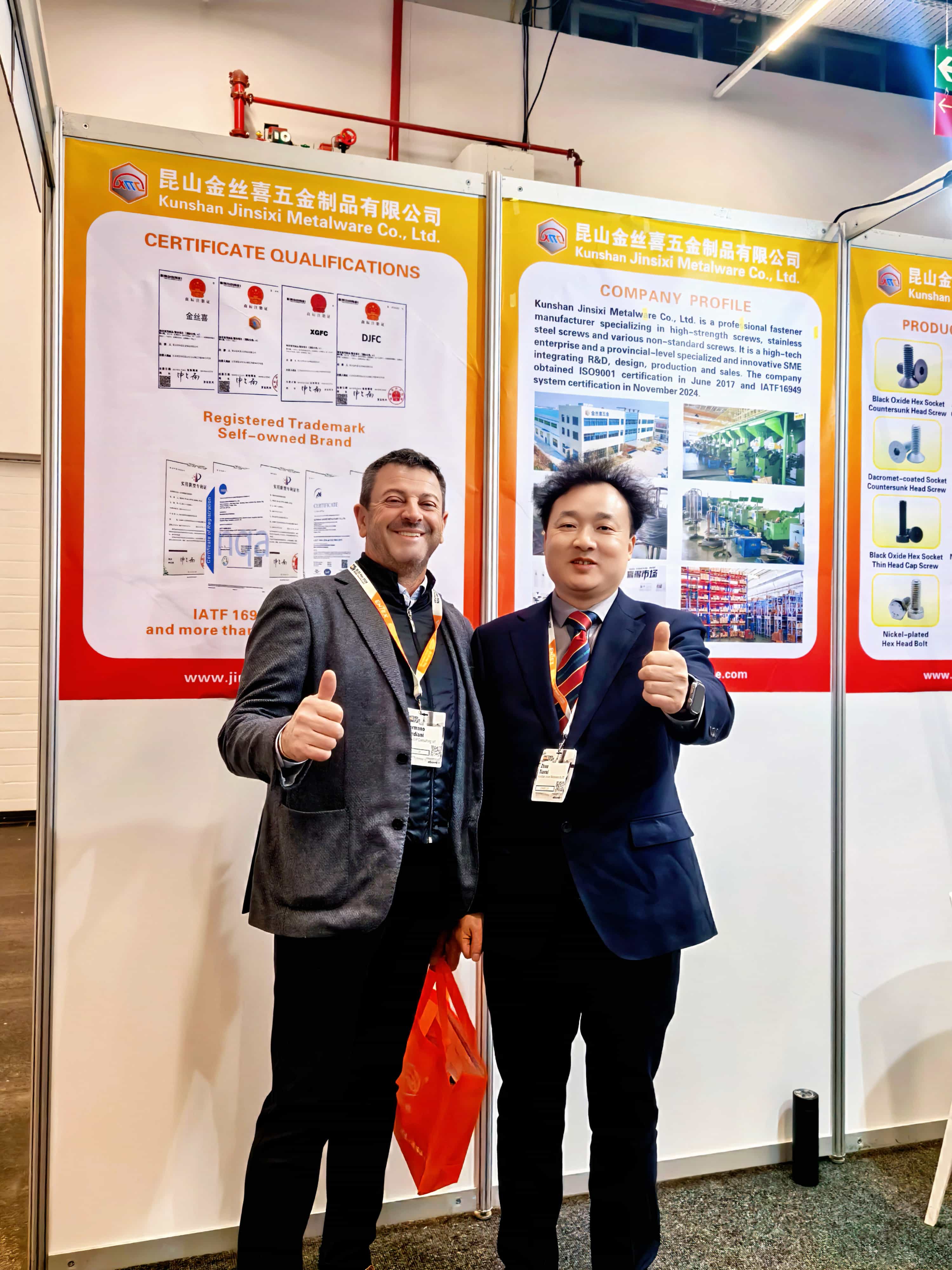 Kanggo nduduhake kekuwatan lengkap,JinsixiNggawe booth sing dirancang kanthi teliti, nyorot sawetarasoket segi enamlansirah segi enamproduk sing nampilake macem-macem pangolahan perawatan lumahing kayata oksida ireng, Nikel-dilapisi, Zinc-dilapisi, lan Dacromet-dilapisi. Produk kasebut tundhuk karo standar utama kalebu GB, DIN, ANSI, JIS, lan ISO, lan digawe saka bahan kayata stainless steel, baja karbon menengah, lan baja paduan. Kabeh produk strictly netepi sistem manajemen kualitas ISO 9001 lan IATF 16949, mesthekake yen saben sekrup lan bolt ngirim kinerja mechanical dipercaya lan stabil.